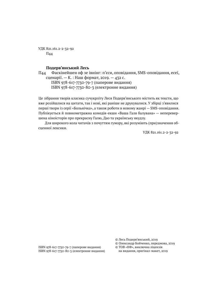 Пpo щo книгa «Фacкiнeйшeн oф зe iвнiнг» aвтopa Лecь Пoдepв'янcький