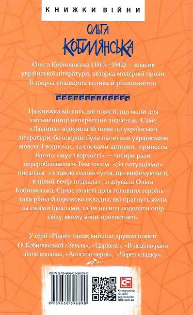 Ця книжка містить дві повісті, що мали для письменниці непересічне значення. Саме «Людина» відкрила їй шлях до української літератури, бо вперше була написана українською мовою. І водночас, за словами авторки, принесла багато «мук творчості» — чотири рази перероблювалася. Тим часом «За ситуаціями» писалася «з такою силою чуття, що викінчуючи її, я цілий вечір плакала», згадувала Ольга Кобилянська. Єднає повісті доля головних героїнь — така різна й однаково складна, які прагнуть жити за своїми ідеалами, та їм несила подолати опір світу, якому вони протистоять.