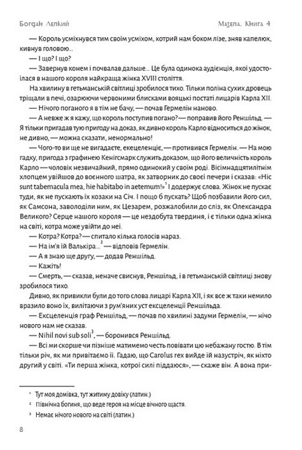 У виданні вміщено четверту з історичних повістей Богдана Лепкого, що складають трилогію (за визначенням автора) «Мазепа». Насправді ж — повістей п’ять. І хоч вони послідовно відтворюють хронологію подій, кожна з них має самостійне значення, тому й публікувалася автором окремо.
