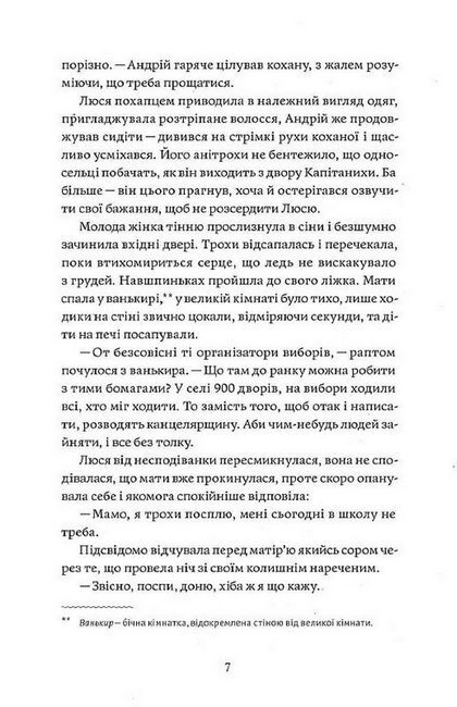 Три покоління жінок, понівечені окупаціями і війнами долі, зраджена довіра та нелегкий вибір між коханням, осудом громади, страхом помилок, обов’язком, штампом.. Але у всьому цьому, попри всім зрозумілу «правду життя» — невидима, легкими пензлями вкраплена любов до рідної землі, садів, ментальності свого народу, який, і не маючи що одягнути, побілить хату і випере білу фіранку на вікні. Любов до тих нечисленних романтиків— які народжуються і в селі, і в місті; вміють любити; яким кохання ускладнює життя та долю, але також дарує радість, за яку варто було страждати й боротися з обставинами. Історія така глибока, чиста і водночас драматургійно напружена, що тримає цікавість читача з першої до останньої сторінки — ба, навіть далі.
