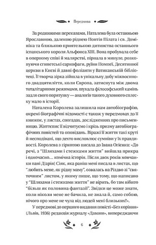 Ім’я Наталени Королевої оповито легендами й загадками. Письменниця не залишила нам жодних документів — лише неймовірну автобіографію та художні твори, які називала «життєписом». До таких належить і «Без коріння» — повість із життя вихованок Київського інституту шляхетних дівчат. Головна героїня, чужинка, уважно придивляється до всього довкола неї і вловлює те, що ховається від інших. У цьому екзотичному коктейлі є і роман виховання, і тонкий психологізм, і київські реалії початку ХХ століття, і ностальгія за юністю. Спробуйте скуштувати і визначити, скільки серед його інгредієнтів правди й легенди, — ось вам загадка, яку залишила Королева.
