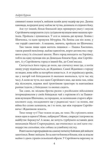 Андрій Курков — журналіст, письменник, сценарист (за його сценаріями знято понад 20 документальних та художніх фільмів), автор більш як 20 книг. Його твори перекладено 42 мовами світу, зокрема англійською, німецькою, французькою, іспанською, голландською, турецькою та багато інших.