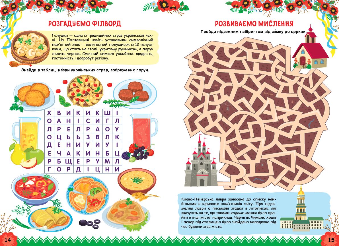 Любов до Батьківщини, як і до родини, з’являється і виховується змалечку. Захоплення красою рідної землі, насолода від милозвучності мови, повага до символів і пам’яток, турбота про ближнього, гордість за українське проростають з усвідомленням себе частинкою країни. Ця книжка допоможе в цьому й відкриє цікаві горизонти пізнання, запропонує незвичні завдання на українську тематику, розраховані на дітей від 8 років, — кросворди, ребуси, шифрограми, судоку, розмальовки, лабіринт, математичні диктанти, завдання для розвитку уваги, покращання дикції та тренування пам’яті.