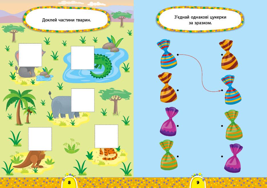 Видання допоможуть розвинути мислення, пам’ять, увагу, покращити мовленнєві здібності й потренувати дрібну моторику пальців рук. Яскраві ілюстрації та робота з наліпками перетворять роботу на захопливу гру.