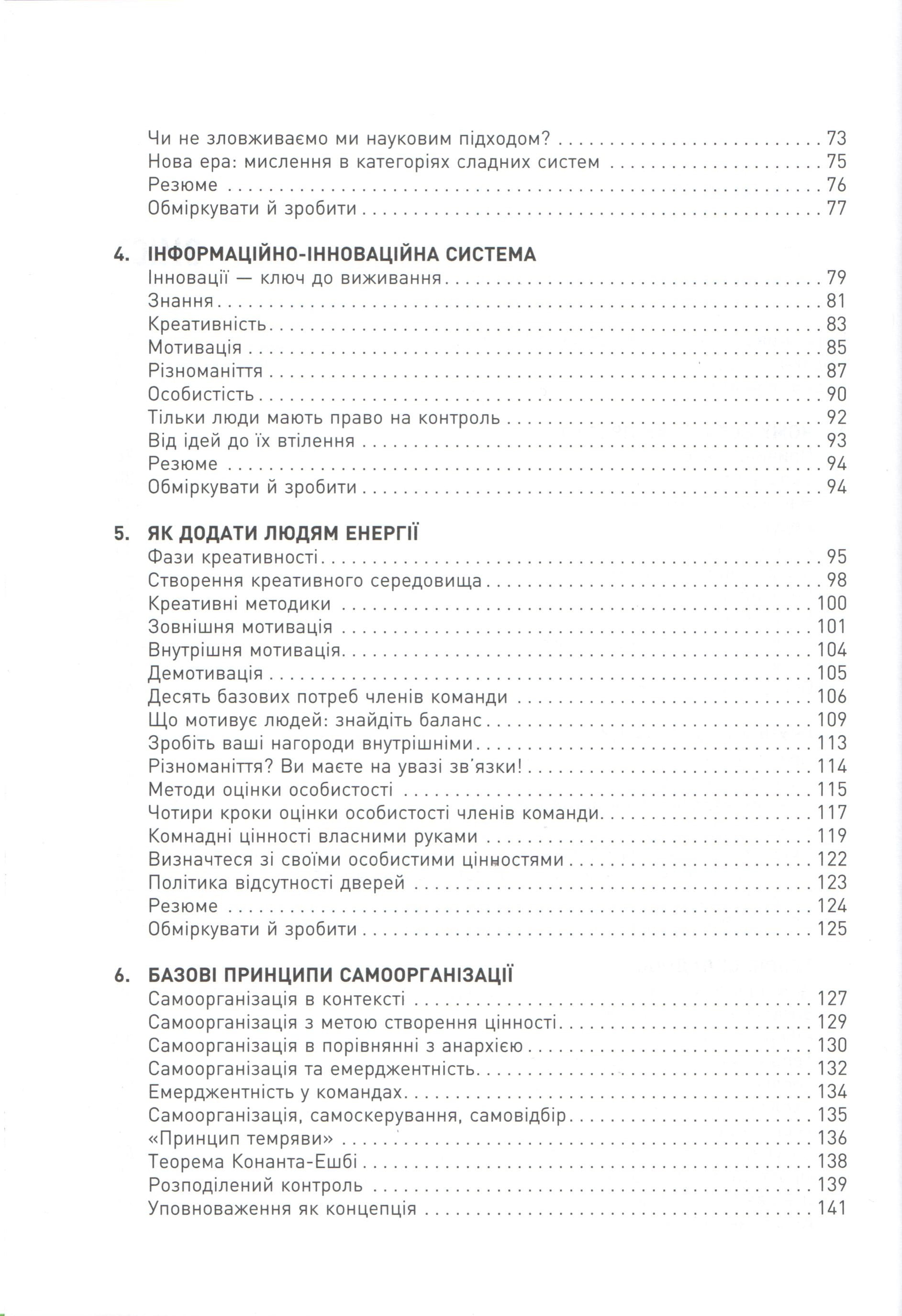 Ця книжка з менеджменту унікальна, оскільки цілком базується на науковому підході та теорії складних систем. На відміну від інших книжок із загального менеджменту, вона не закликає вас «відкрити своє серце», «взятися за руки» або повторювати якісь мантри. Наукові ідеї тут представлені досить неформально, з докладними поясненнями і великою кількістю метафор та ілюстрацій. Тут навіть можна знайти як мінімум кілька дійсно кумедних жартів.