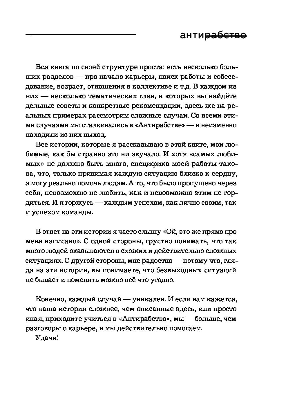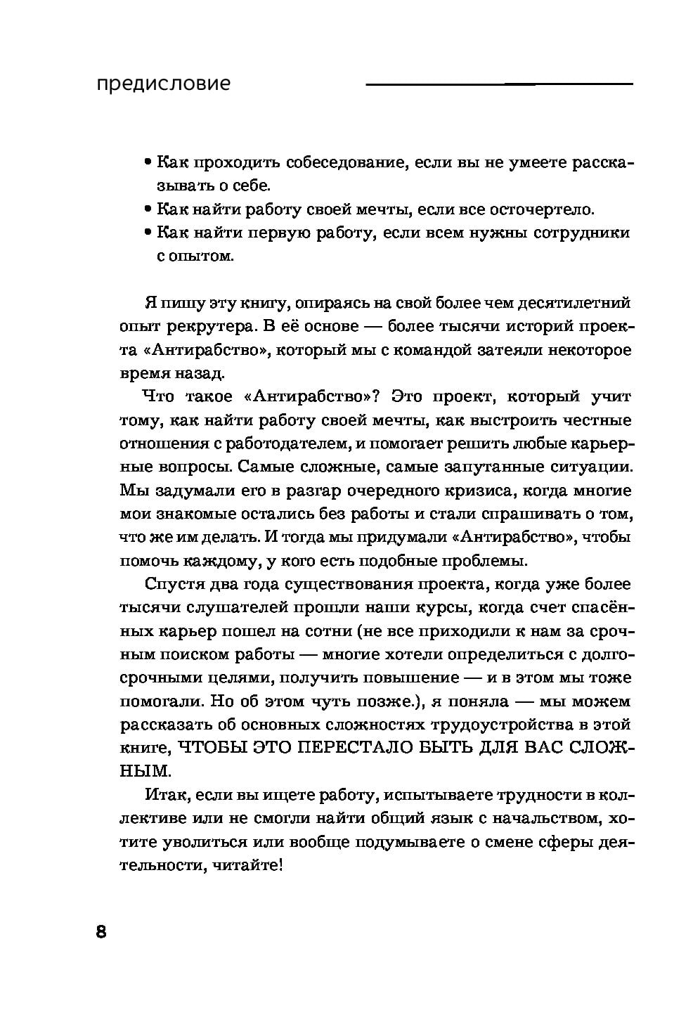 Во всех этих ситуациях вы посмотрите на себя глазами эйчара – и кадровые вопросы перестанут быть для вас неразрешимыми. В каждой главе этой книги вы найдете не только развернутый ответ специалиста, но и конкретный пример из практики. Все это кто-то уже проходил до вас, и лучшее, что вы можете сделать, – это учиться на этих кейсах! Автор работает в рекрутинге и HR более 15 лет и за это время помогла уже тысячам людей обрести не просто работу, а работу, приносящую радость.
