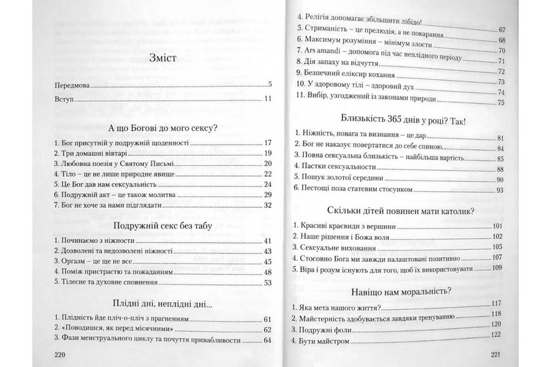 Отець Ксаверій Кнотц дуже просто та відкрито показує, що помиляються і одні, і другі. Бог не підглядає за нами у спальні. Обдаровуючи чоловіка та дружину своїми щедротами, Він зацікавлений у щасливому сексуальному житті подружньої пари. Суть сексуального життя полягає не лише в отриманні насолоди, але й у будуванні зв’язку, пережитті єдности та в інтимній зустрічі двох люблячих осіб.