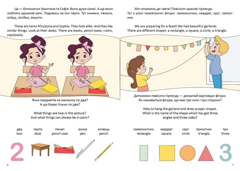 Книжка-білінгва — корисна й цікава для дітей, які вивчають англійську мову. Книжка привабить читачів короткими текстами, допоможе з опануванням базових англійських слів і речень. А пречудові ілюстрації розвинуть дитину естетично.