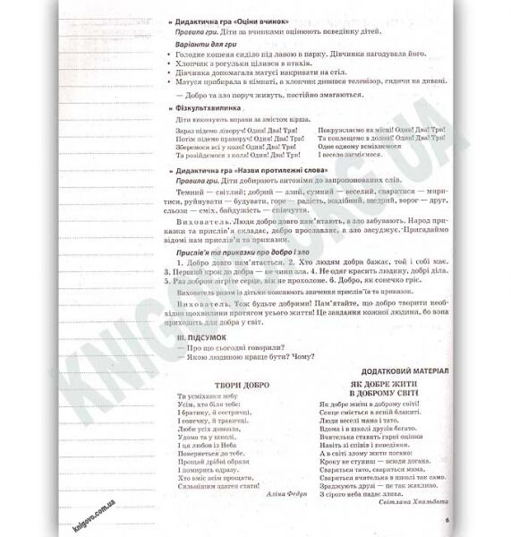 Задля зручності використання всі розробки розміщено на відривних аркушах. Береги для нотаток дадуть творчому вихователеві змогу, користуючись запропонованим у посібнику матеріалом, скласти власні конспекти занять.
