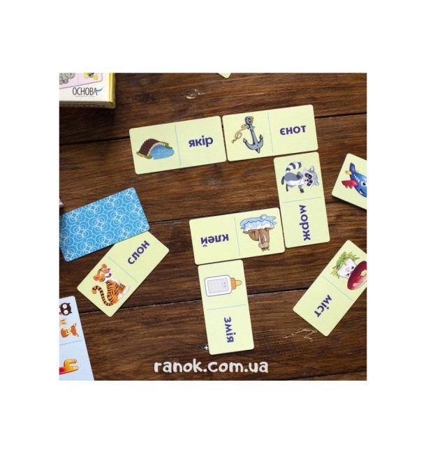 Це не зовсім звичайне доміно, стикування робиться не лише в лінію, але і за всіма чотирма напрямками, що робить гру ще цікавішою. Гра змусить дитину логічно мислити, підбираючи необхідні картки для подальшої перемоги.