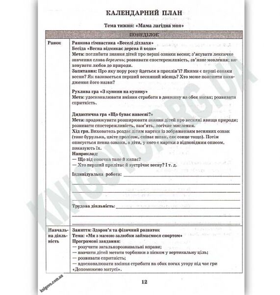 Розгорнутий календарний план Весна Середня група Авт Ванжа Ранок 18698