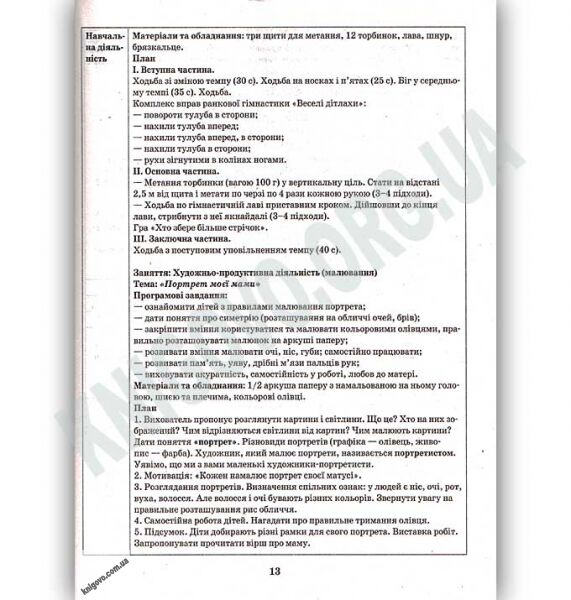 У посібнику подано перспективний та розгорнутий календарний план організації навчально-виховного процесу з дітьми середньої групи ДНЗ. План складений за блочно-тематичним принципом, що забезпечує змістову цілісність, системність, послідовність, ускладнення та повторення матеріалу протягом тематичного тижня.