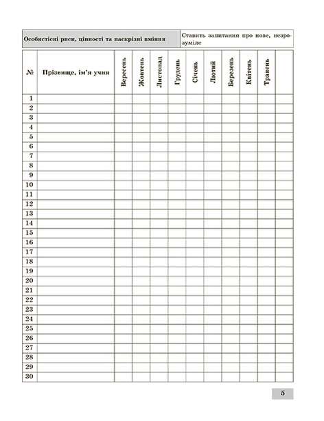 Журнал спостережень за динамікою зростання рівня особистісних і навчальних досягнень учнів 1 класу НУШ Весна 36149