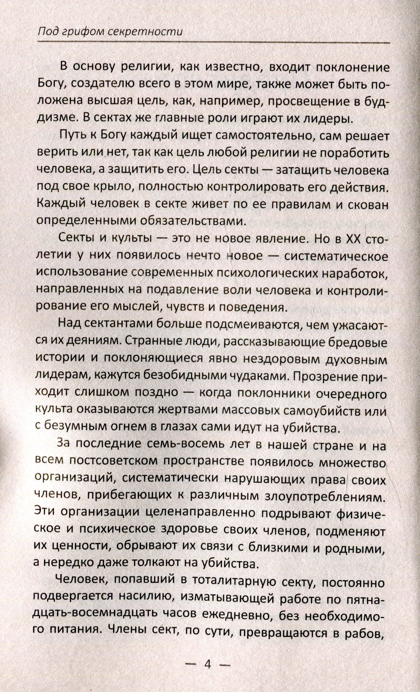 О многих секретах деструктивных культов и тоталитарных сект вы узнаете из этой книги. Читайте, размышляйте, делайте выводы и помните: знание - сила.