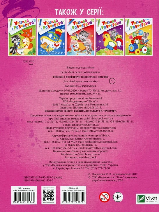 Ці книжки сподобаються кожному малюку. У них він знайде чудові добрі картинки і великі області для розфарбовування. Розмальовки розвивають дрібну моторику, сприйняття кольору, інтелект і творчі здібності.