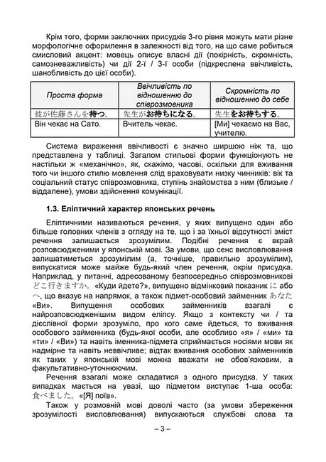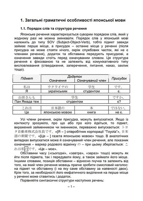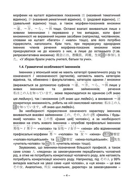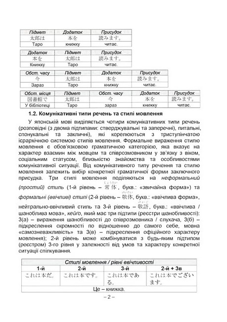 Цей посібник є першою україномовною систематичною практичною граматикою японської мови, яка розрахована на осіб, що освоїли базовий нормативних курс сучасної японської мови та бажають поглибити чи систематизувати свої знання. В основу матеріалу «Граматики» покладено, з одного боку, мову сучасної японської преси та літератури, а з іншого боку, повсякденну розмовну мову з урахуванням найсуттєвіших стилістичних та діалектних особливостей. У кінці «Граматики» міститься додаток, який пропонує стислий опис граматики класичної старописемної японської мови бунґо. Книга призначається у першу чергу для студентів сходознавчих вузів та факультетів, аспірантів та викладачів, а також для найширшого кола читачів, які цікавляться японською мовою.