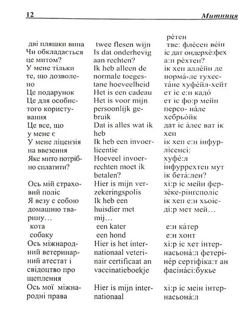 Українсько-нідерландський розмовник призначений передусім для громадян України та українців інших країн, які виїжджають до Нідерландів, а також для школярів, студентів і всіх, хто вивчає нідерландську мову.