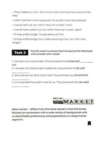 \nВоркбук орієнтований на власників бізнесу, студентів факультетів менеджменту або маркетингу та людей, які хочуть покращити знання англійської мови у цій сфері.