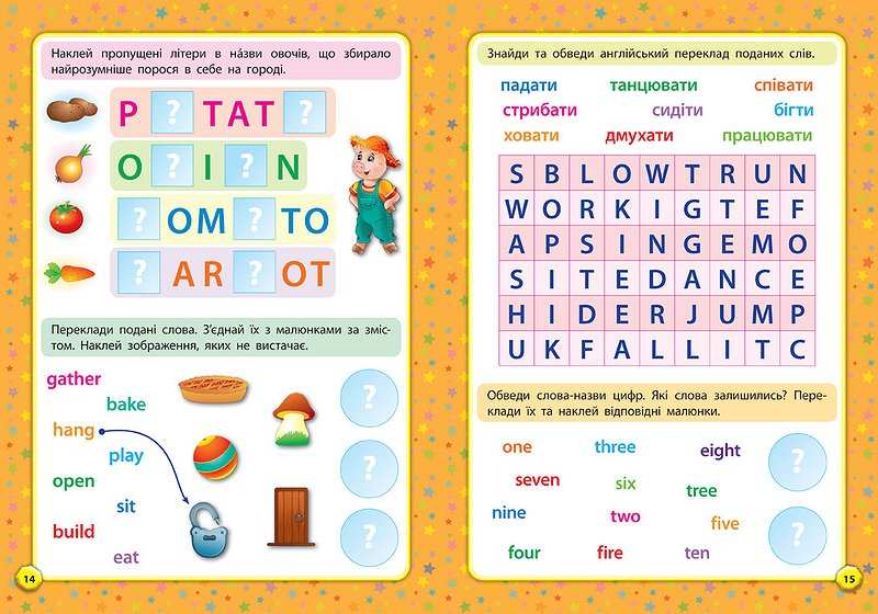 Видання дозволить дитині поповнити словниковий запас, повправлятися в граматиці та правописі англійської мови, а також весело та корисно провести час!
