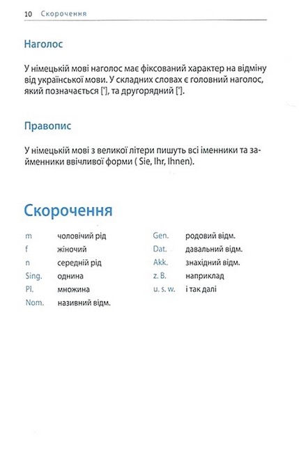 Почніть говорити німецькою – вивчіть 1000 слів – і Ви швидко і впевнено опануєте повсякденну лексику. 80% цієї лексики – вже Ваші. Для кожного слова є практичний приклад вживання речення і фонетична транскрипція, а також безліч порад щодо правильного використання мови. Ця книга – ідеальний помічник і надійний супутник в повсякденному житті при вивченні німецької мови як іноземної.