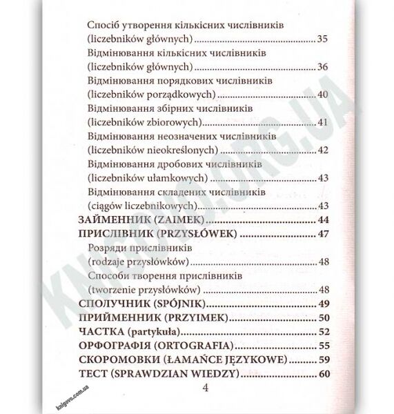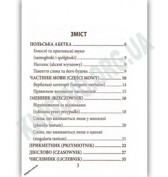 Метою цього довідника є ознайомлення широкого кола читачів із основами граматики польської мови. Основні граматичні правила подано у вигляді таблиць і схем, які супроводжуються прикладами та перекладом українською мовою. Матеріал викладено у простій і лаконічній формі, що дозволить використовувати його на початковому етапі оволодіння польською мовою та водночас сприятиме закріпленню набутих знань. Довідник доповнено правилами польської орфографії, а також скоромовками. Книга стане у нагоді учням шкіл, студентам, слухачам курсів, а також усім, хто вивчає польську мову.