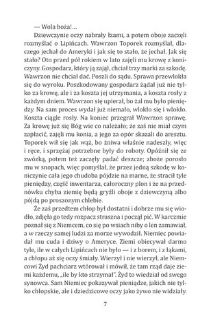 \n...Zubozaly chlop Wawrzon Toporek razem ze swoja corka Marysia na statku wyrusza do Ameryki. Lecz zamiast basni czeka na niego wypelniona rozczarowaniem rzeczywistosc. Do edycji weszly rowniez opowiadania „Janko Muzykant” i „W krainie zlota”.