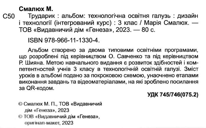 Трударик. Альбом: технологічна освітня галузь: дизайн і технології (інтегрований курс) для 3 класу закладів загальної середньої освіти, авт. Марія Смалюх