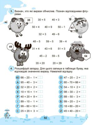 Зміст посібника «2+2. Весела лічба» відповідає оновленій програмі з математики для 1 класу. Зошит містить різноманітні завдання, які зроблять навчання дитини цікавим і корисним. Враховуючи вікові особливості першокласників, автор пропонує учням допомогти казковим або мультиплікаційним героям знайти значення виразів чи перевірити результати обчислень. Завдання на встановлення відповідності подано в ігровій формі (Хто які квіти зібрав?, З’єднай повітряні кульки тощо). Користуючись «математичною абеткою», діти зможуть розшифрувати або зашифрувати запис. Правильне виконання обчислення допоможе розфарбувати малюнок і здійснити таким чином «миттєву» перевірку. Діти з інтересом ставляться до таких завдань і виконують їх із задоволенням. Частину завдань рекомендується виконувати разом з дорослим, на що вказує відповідна позначка. Посібник сприятиме вдосконаленню обчислювальних навичок, спонукатиме першокласників активно працювати, мислити, отримувати результат і радіти своїм досягненням. Посібник можна використовувати: • на уроках математики під час вивчення відповідних тем за оновленою програмою; • у позаурочний час (у групі продовженого дня) – для повторення, закріплення знань та розвитку компетентностей; • на канікулах, у період карантину – для повторення, закріплення, організації корисного і пізнавального дозвілля учнів.