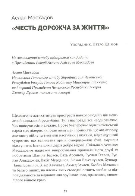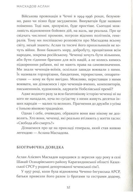Автором книги є титульна постать новітньої історії, Президент незалежної Чечні Аслан Масхадов. У дні великих випробувань йому судилося очолити державотворчий процес, котрий фактично розгортався у воронці безперервних військових провокацій кремля. Харизматичний лідер Ічкерії стояв біля витоків збройних сил ЧРІ та відзначився низкою блискучих воєнних операцій з нейтралізації окупаційної армії РФ. Згодом він очолив безкомпромісний партизанський спротив кремлівським маріонеткам на Кавказі.