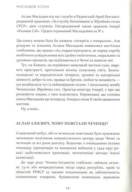 Виклад книги має характер розлогого інтерв'ю та по суті є вникливим діалогом з цілою Епохою. Кожна сторінка видання містить інтенсивні судження і концентровані думки видатного воєначальника і політика незалежної Ічкерії. Ця праця видана вперше в Україні і містить ексклюзивну передмову Анзора Масхадова — сина визначного чеченського лідера.