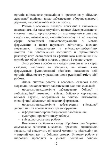 Зміст підручника відповідає програмі навчання з відповідної дисципліни «Організація та методика роботи з особовим складом».