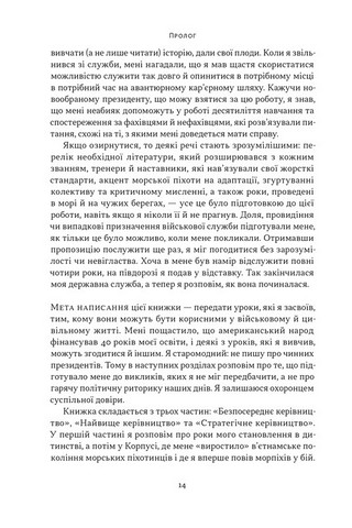 \nУ часи, коли війна в Україні створює суцільний хаос, а військові, бізнес і громади перебувають у стані постійної невизначеності, ця книжка є обов’язковою для кожного лідера. Запропоновані в ній ідеї та практичні приклади допоможуть у формуванні нової військової еліти, етичного і відповідального бізнесу, прозорих відносин всередині держави.
