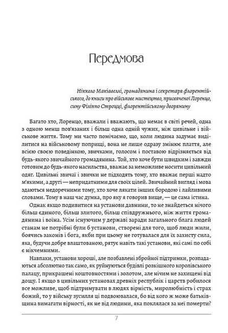 Як відомо, Схід — є Схід, а Захід — є Захід, і їм не зійтися ніколи. Але тільки не в цій книзі, де поєднано два найвідоміших трактати про цілі, стратегію, тактику і загалом філософію військових дій. Два погляди на військове мистецтво: італійця Макіавеллі та китайця Сун Цзи дуже різні і далекі один від одного, що не дивно. Проте, вони дають багатющий матеріал для власних міркувань і висновків допитливому читачеві.