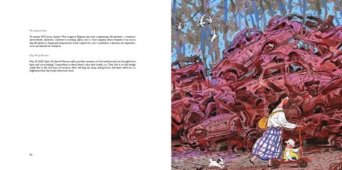 Коли на Україну посипалися російські ракети, коли в містечка під Києвом зайшли окупаційні війська, Юлія Твєрітіна почала документувати нові досвіди українців в ілюстраціях — щоб універсальною мовою мистецтва розповісти світові про переживання війни. Зі свідчень її друзів і рідних, з потоку страшних новин, із власних рефлексій авторки народився «Щоденник війни». Болісна, емоційно влучна, глибока художня серія, у якій попри все є місце для барв і світла.