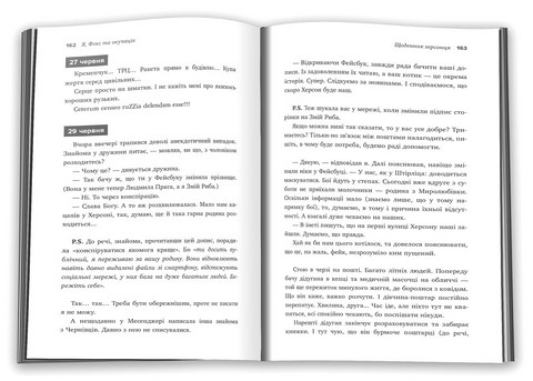 Ця книжка Олександра Меньшова — це піврічний життєпис його родини (та і міста загалом) з дня, коли рашисти зайшли у Херсон. У щоденнику автора показано, як за ці шість місяців змінилося життя містян під окупацією. На сторінках «Я, Фокс і окупація» переплелися особисті думки автора, розповіді його рідні та знайомих, ставлення найрізноманітніших людей до «асвабадітєлєй», екскурси в минуле міста, проза і поезія, плани і сумніви, смуток і радощі… Коли над дітьми Олександра нависла загроза примусового навчання за російською програмою (і наративами, звісно), родина все ж наважилася виїжджати з Херсона до вільної України. Це їм коштувало шести днів у черзі і проходження двадцяти п’яти ворожих блокпостів. І якою б не була радість від того, що ця пригода вже в минулому, письменник не втрачає надії повернутися у рідне мирне місто, тож вступив до лав ЗСУ, щоб наблизити цей день.