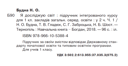 Підручник Я досліджую світ 1 клас Частина 1 НУШ Авт: Будна Н.О. та ін. Вид-во: Богдан 19938