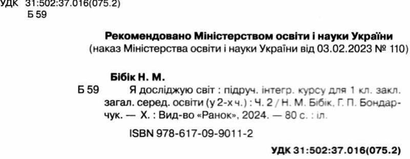 Підручник Я досліджую світ 1 клас дві частини 2 Частина НУШ автори: Бібік Н. Бондарчук Г. Інтегрованого курсу для 1 класу закладів загальної середньої освіти.
