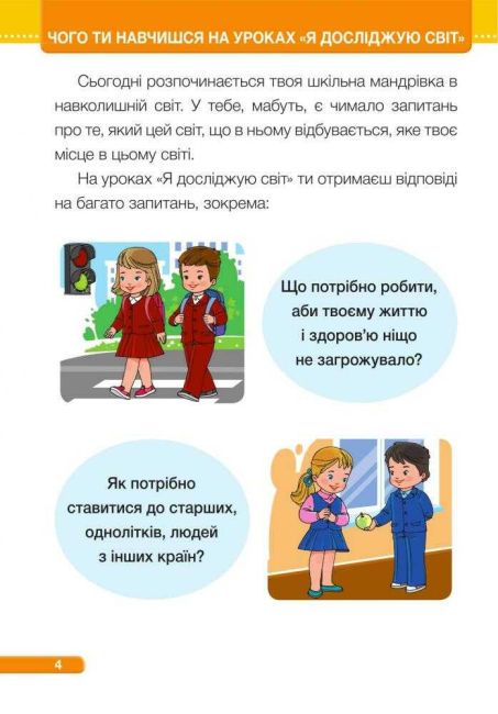 Тематичну основу підручника складають змістові лінії, визначені Державним стандартом початкової освіти, а саме: Людина, серед людей, в суспільстві, Людина і світ, і природа. Підручник реалізує інформаційну, мотиваційну, розвивальну, діяльнісну, виховну та дослідницьку функції.