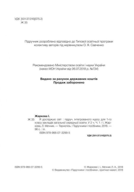 Підручник Я досліджую світ 1 клас Частина 1 НУШ Авт: Жаркова І. Мечник Л. Вид: Підручники і Посібники