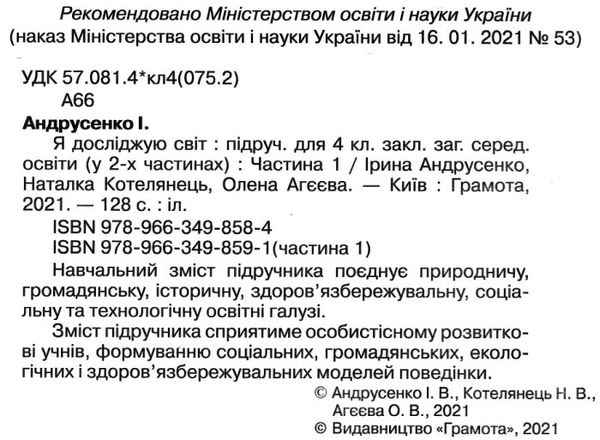 Підручник Я досліджую світ 4 клас Частина 1 НУШ Андрусенко І. Грамота. Нова українська школа.
