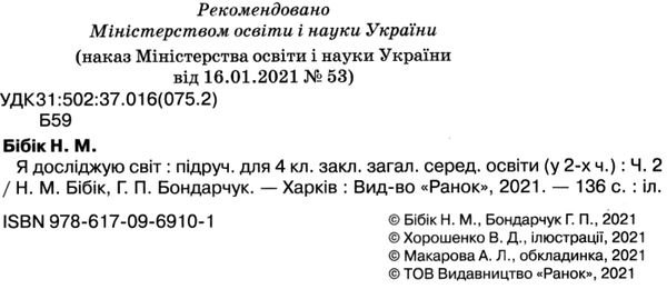 Підручник Я досліджую світ 4 клас Частина 2 НУШ Бібік Н. М. Бондарчук Г. П. Ранок. Підручник створений за Типовою освітньою програмою, розробленою під керівництвом О. Я. Савченко.