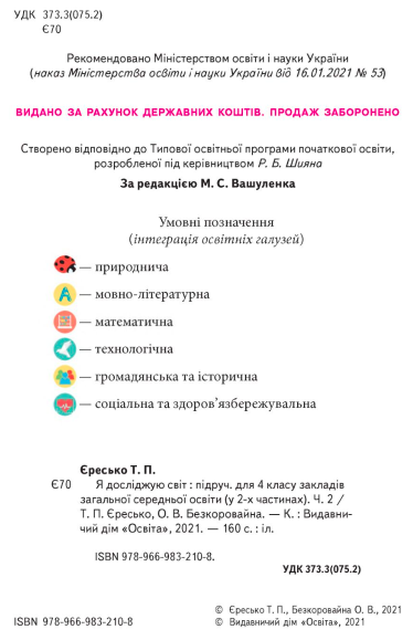 Підручник Я досліджую світ 4 клас Частина 2 за ред. Вашуленка М. НУШ Єресько Т. Освіта.