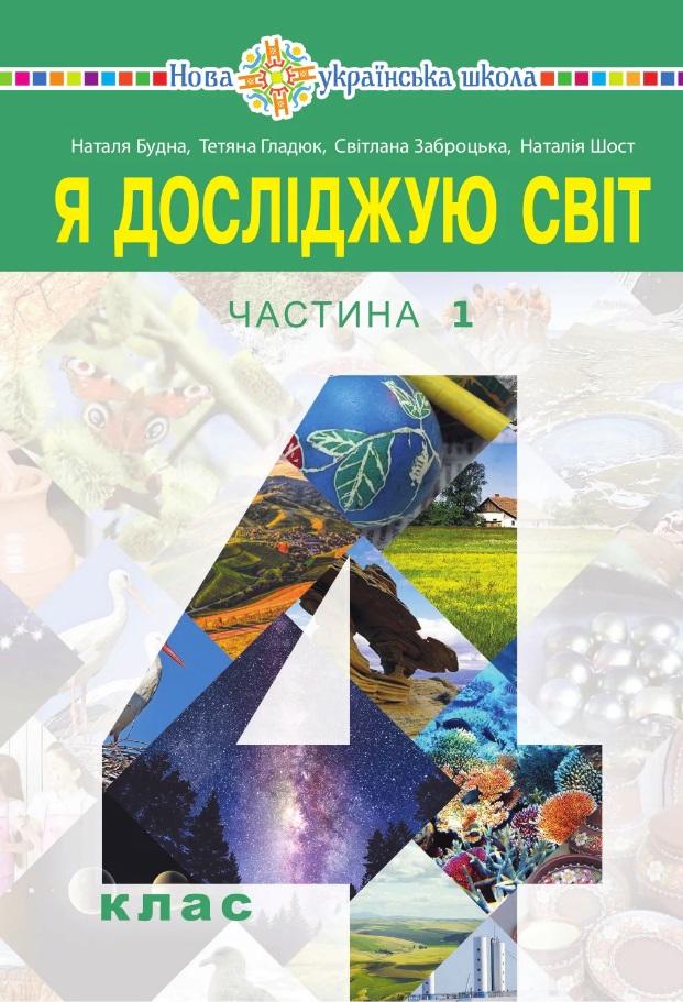Підручник Я досліджую світ 4 клас НУШ у 2-х частинах 1 частина Н. Будна, Т. Гладюк, С. Заброцька, Н. Шост Богдан. Підручник за своїм змістом відповідає Державному стандарту початкової освіти та Типовій освітній програмі, розробленій під керівництвом О. Я. Савченко.
