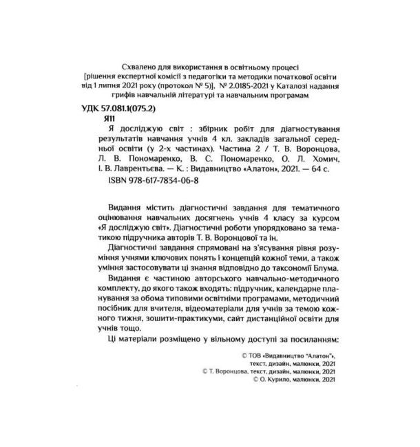 Діагностичні роботи Я досліджую світ 4 клас 2 Частина НУШ Авт: Воронцова Т. Пономаренко Л. Пономаренко В. Хомич О. Лаврентьєва І. Вид-во: Алатон 63293