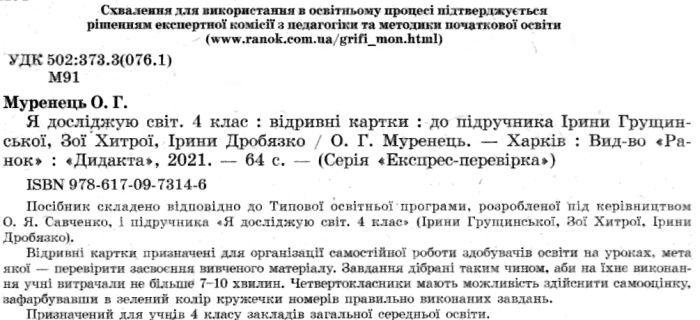 Експрес-перевірка Я досліджую світ Дидакта 4 клас НУШ До підручника І. Грущинської та ін. Авт: Муренец О. Г. Вид-во: Ранок 63565