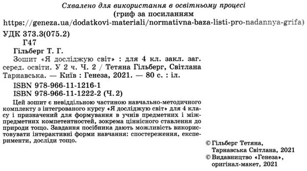 РОБОЧИЙ ЗОШИТ Я ДОСЛІДЖУЮ СВІТ 4 КЛАС ЧАСТИНА 2 НУШ ГІЛЬБЕРГ Т. ГЕНЕЗА