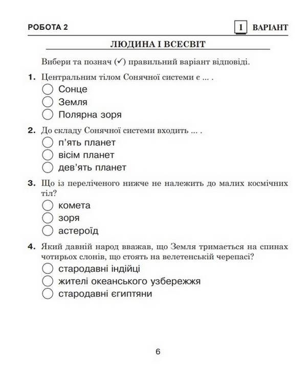 Діагностичні роботи до підручника "Я досліджую світ" 4 клас