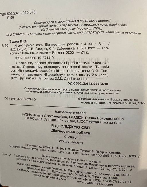 Я досліджую світ 4 клас Діагностичні роботи До підр. Грущинська НУШ Будна Н. Богдан