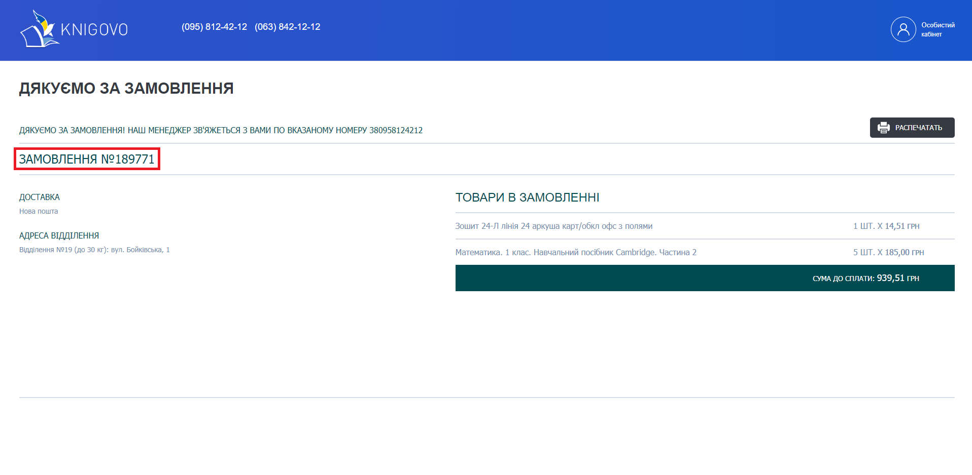 Будь ласка, запам'ятайте номер вашого замовлення, його виділено червоним на зображенні нижче.