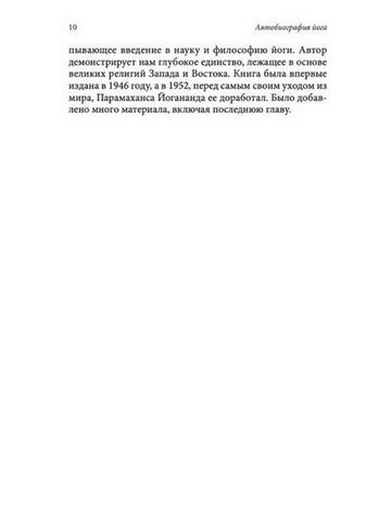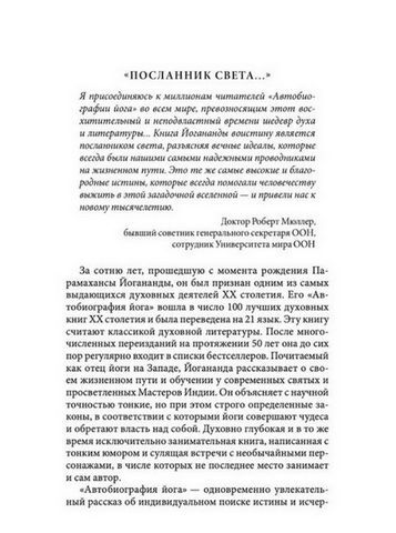 Эта волшебная книга чудесным образом изменила жизни сотен тысяч людей. Она написана человеком, который достиг наивысшей реализации и вложил в эту книгу энергию, способную пробуждать души. Ставшая уже классикой и изданная миллионными тиражами, автобиография Парамахансы Йогананды показывает великие чудеса Индии, духовную жизнь и этапы пути как непосредственное внутреннее восприятие последователя древнейшей духовной традиции. Всю глубину мудрости этой книги невозможно воспринять с первого прочтения, и каждый раз, возвращаясь к ней на новой ступени своих духовных поисков, читатель неизменно черпает высочайшее вдохновение.